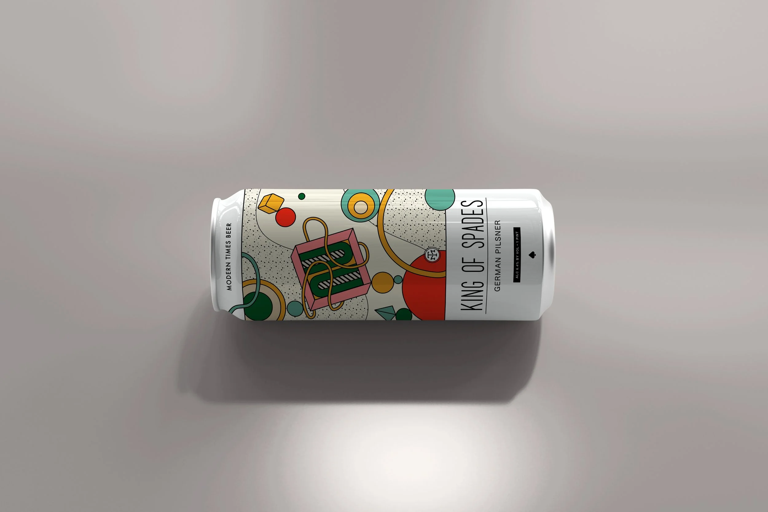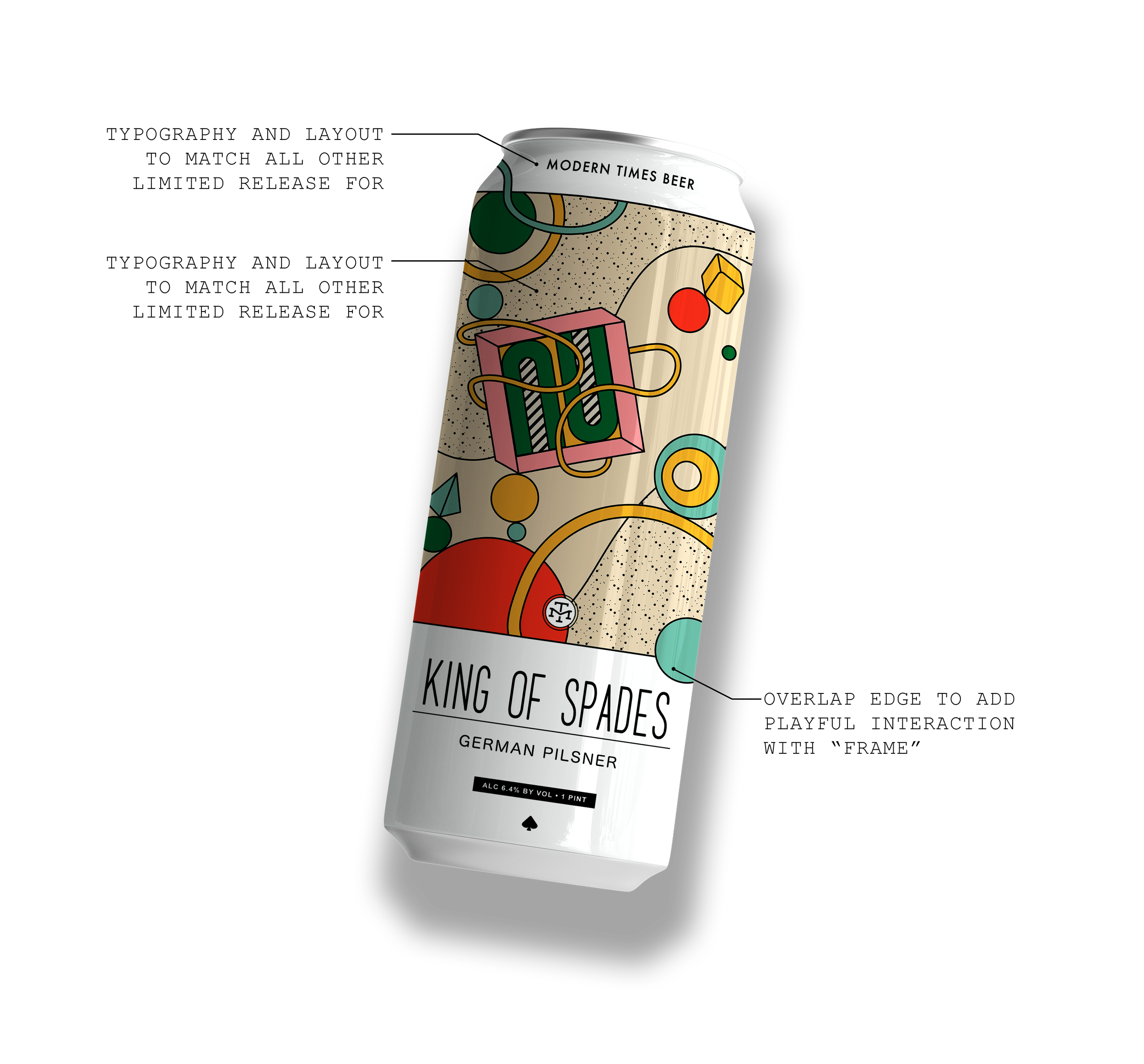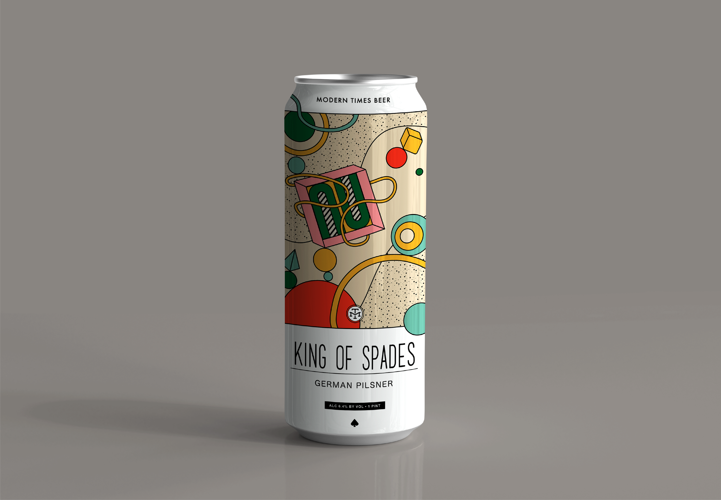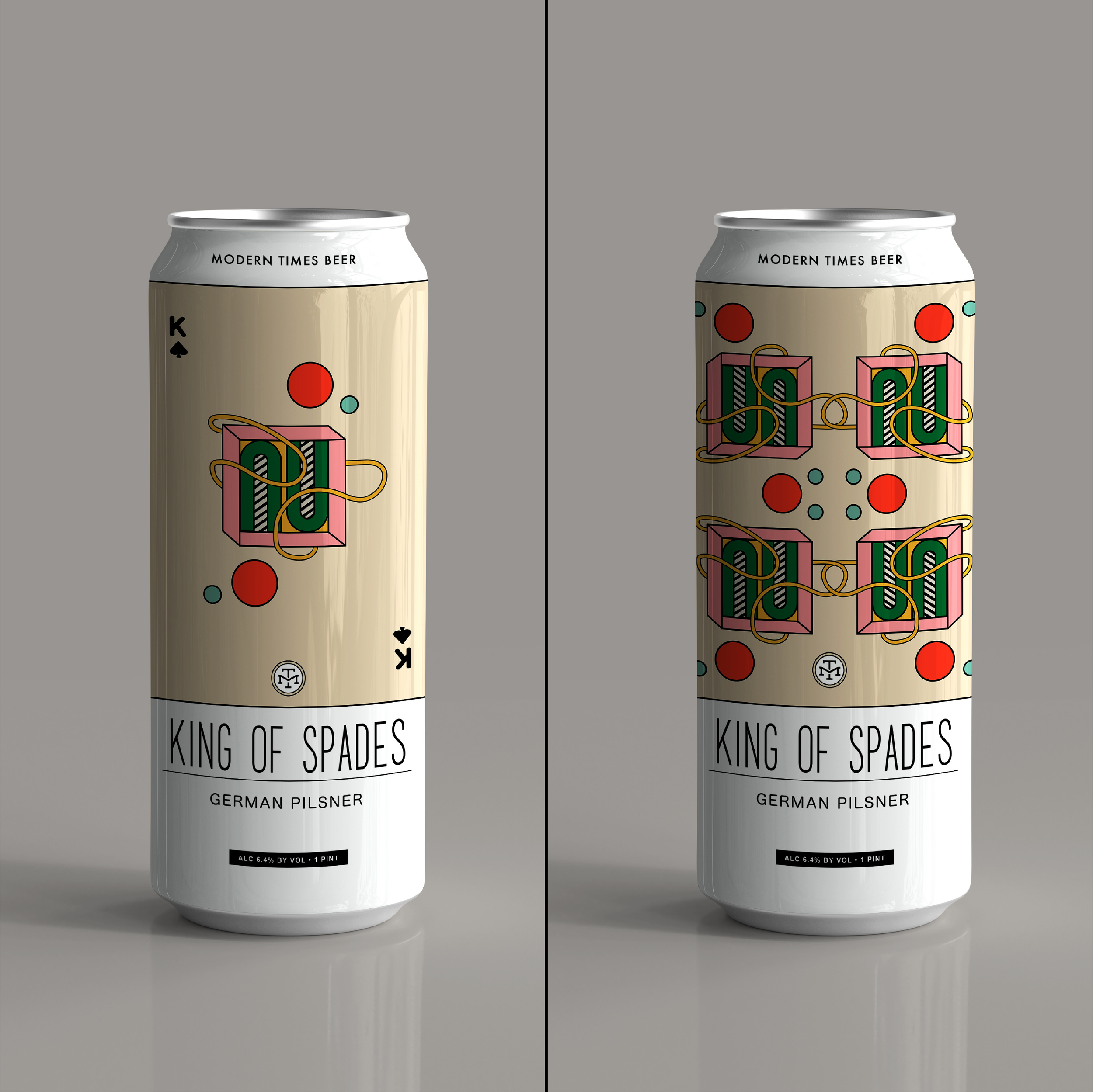 Take the King of Spades card from the Modern Times playing card deck and reimagine it as a beer label. Packaging should match the existing limited release beer branding, and be a clear tie in to card deck to cross promote both products for a “game night” complete set.